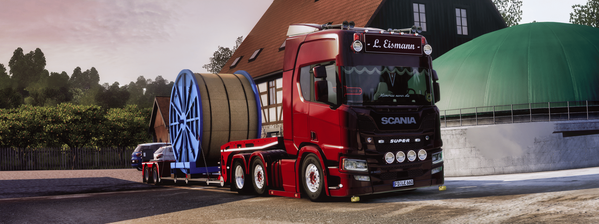 Netter Nebenverdienst von dem Bäuerchen, die Kabeltrommeln in seiner Scheune einlagern zu lassen... nur das Aufladen mit dem Frontlader war "abenteuerlich"