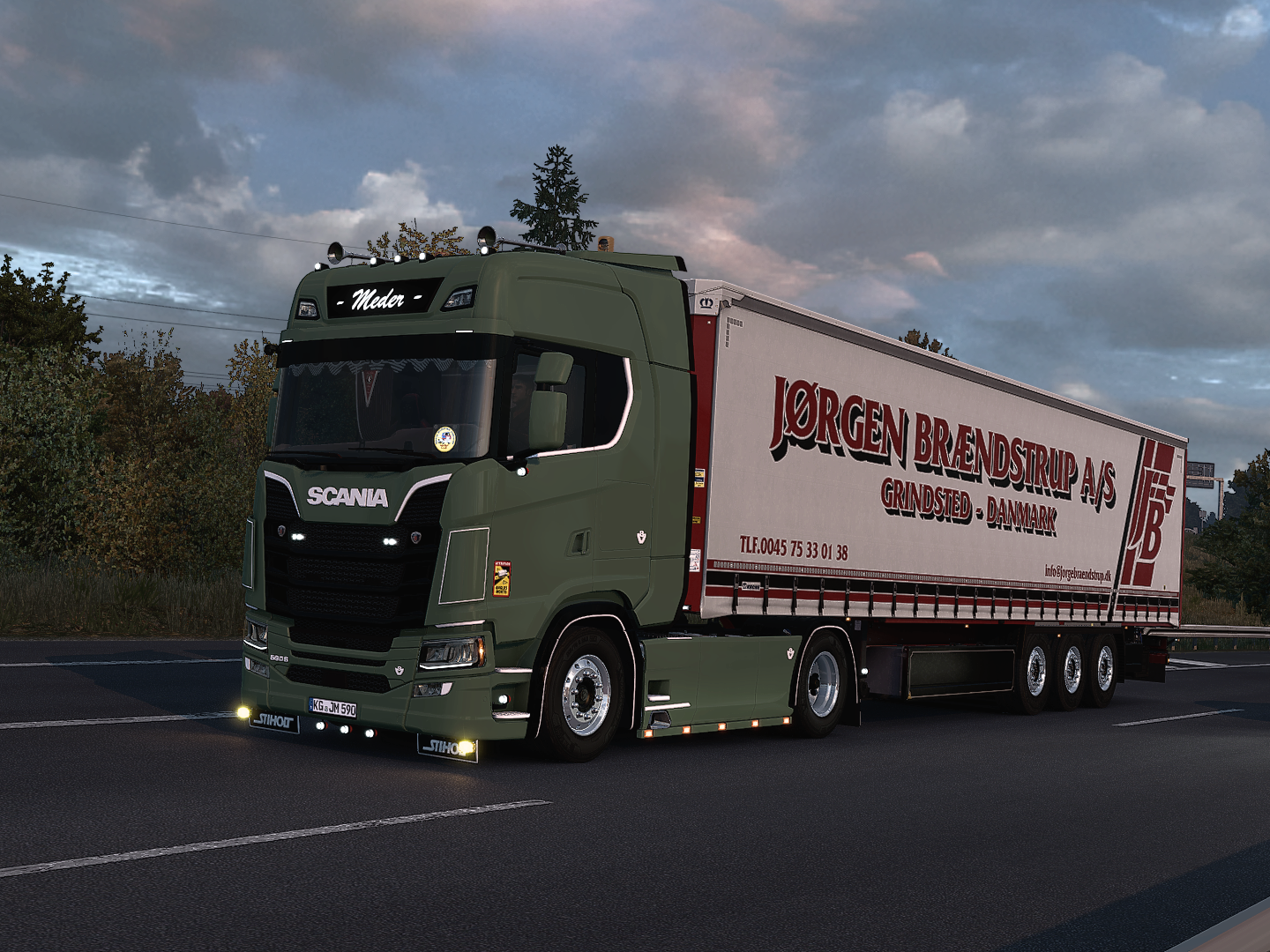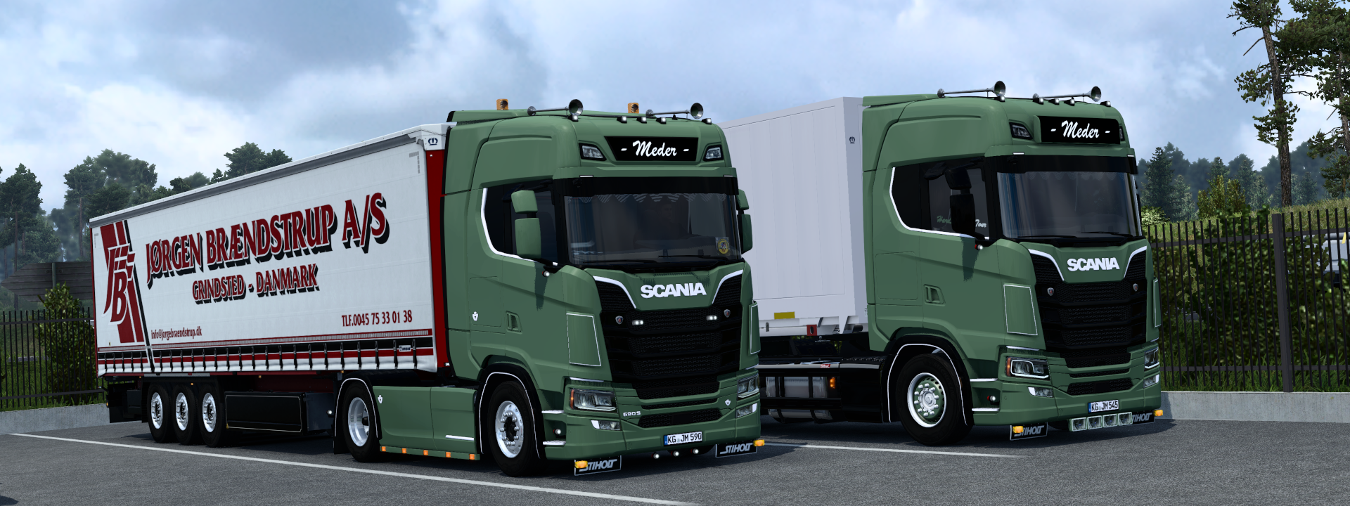 Bei uns kommt das mit den Scania hauptsächlich daher, dass die Firma bis Patch 1.40 auf sogenannte "Standalone"-LKW, welche auf hochwertigen 3D-Modellen basiert haben, gesetzt hat. Da war eben aufgrund der Beliebtheit von Scania einfach die größte und qualitativere Auswahl bei dieser Marke vorhanden, also gab es eben Scania.Und als dann jetzt mit der 1.41/.42 neue privat gemoddete LKW, also die NewGen S, kamen, wurde eben Scania behalten, weil auch hier eben die NewGens das qualitativ hochwertigste waren, was SCS zu bieten hatte. Wobei wir zu unserer Verteidigung mittlerweile auch einen MAN TGX 18.460 im Fuhrpark haben