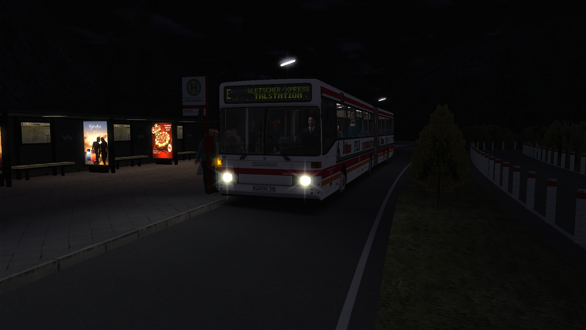 Heute Abend kam ein Reservefahrzeug (Wagennummer 313) auf der Linie "Gletscher Express" von der Haltestelle "Zavelstein" (um 19:13 Uhr) nach "Gletscherbahn Talstation" (um 19:32 Uhr) und wieder zurück. Grund war ein ausgefallener C2G (Wagennummer 184) an der Haltestelle "Gletscherbahn Talstation".