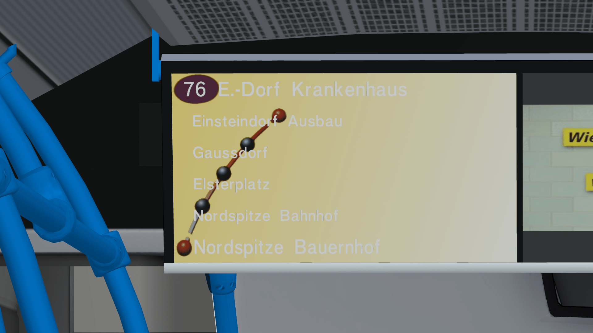 Ich hätte eine Frage, und zwar wollte ich mir die Innenanzeige im Citaro auf die von Baden-Baden anpassen. Da sind die Haltestellen aber in einer Kurve angeordnet und die Farbe der Schrift müsste schwarz sein. Kenne mich da nicht wirklich aus und wollte fragen, ob mir jemand erklären konnte was ich da verändern muss, damit alles an der richtigen Stelle ist.