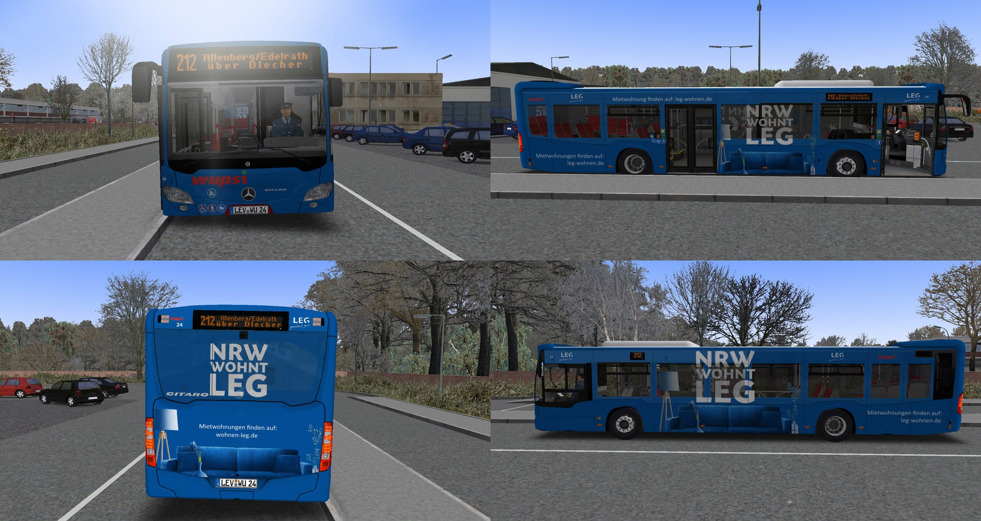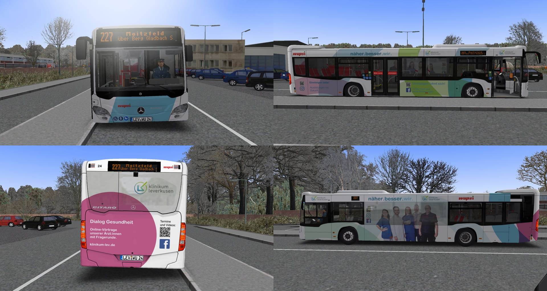 Hier kommen die drei Werbungen von Wupsi Wg.24. Der Wagen 24 kam im März 2016 zur Wupsi und hat dementsprechend noch das alte Desh mit den kurzen Hörnern. Im Gegensatz zu den repaints für den BRT C2 sind diese rundum erneuert wurden. Das sieht mal sehr gut an der Klinikum Leverkusen Werbung. Da es nicht viel zu sagen gibt wünsche ich euch viel Spaß mit den drei repaints.