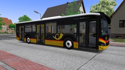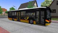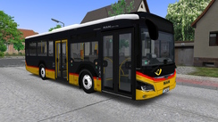 The pack contains repaints for all the sizes. This pack contains the classic PostAuto scheme for all the vehicles, which are yellow below the windows, with a red line, and with the top of the vehicle being white. This painting scheme is easily recognizable with the giant logo applied on both sides after the first axle.