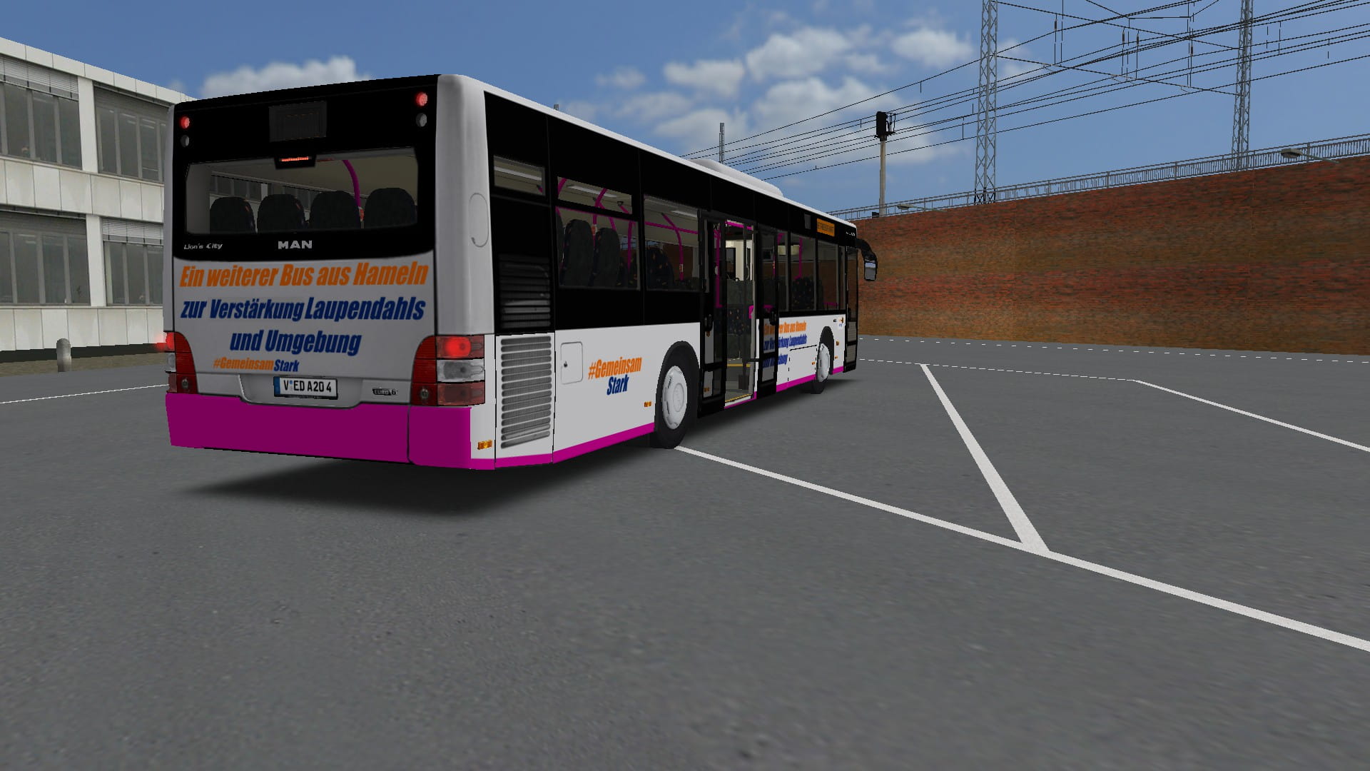 HM-OE 124 (fiktiv) . Die ROGIS hat die Sitzbezüge geändert um etwas von der ROGIS in diesem Bus zu haben. DIe Haltestangen sind noch die aus Hameln, weil diese ja etwas schwer Umzulackieren sind. Naja wie dem auch sei, der Bus hat Magnetschilder bekommen, sodass die Einwohner Laupendahls bescheid wissen. Die Aufschrift #Gemeinsamstark mit den Verschieden Farben soll Signalisieren, dass die ROGIS und die Öffis miteinenader Kooperieren.