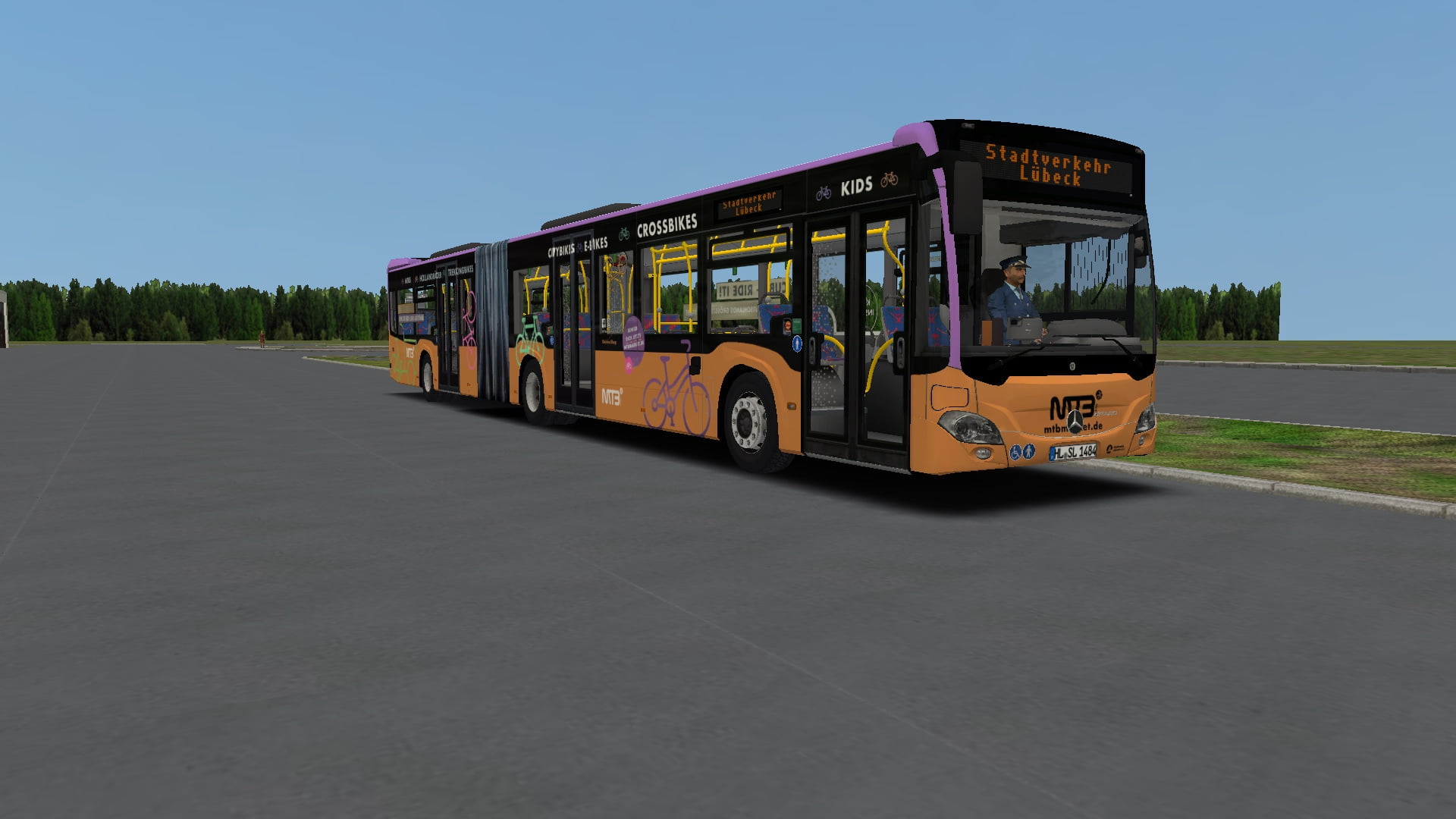 Das Repaint zeigt den Wagen 484 der Stadtwerke Lübeck mobil (SWLm) auf Basis des Mercedes Benz Citaro C2 Euro 6 Gelenkbusses in der 3-Türer-Version.