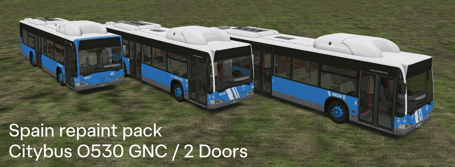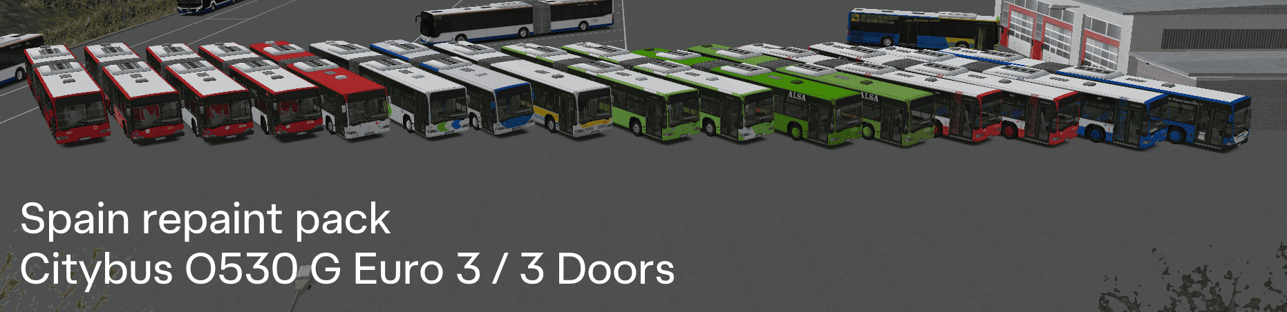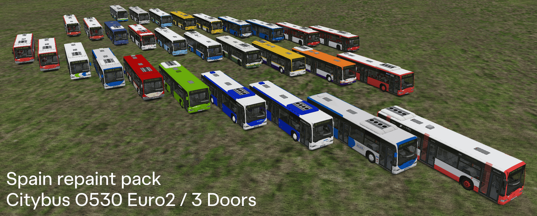 The purpose of this pack is also to gather and showcase the wide variety of liveries used by Spanish urban bus companies. For this reason, none of the repaints include advertising.