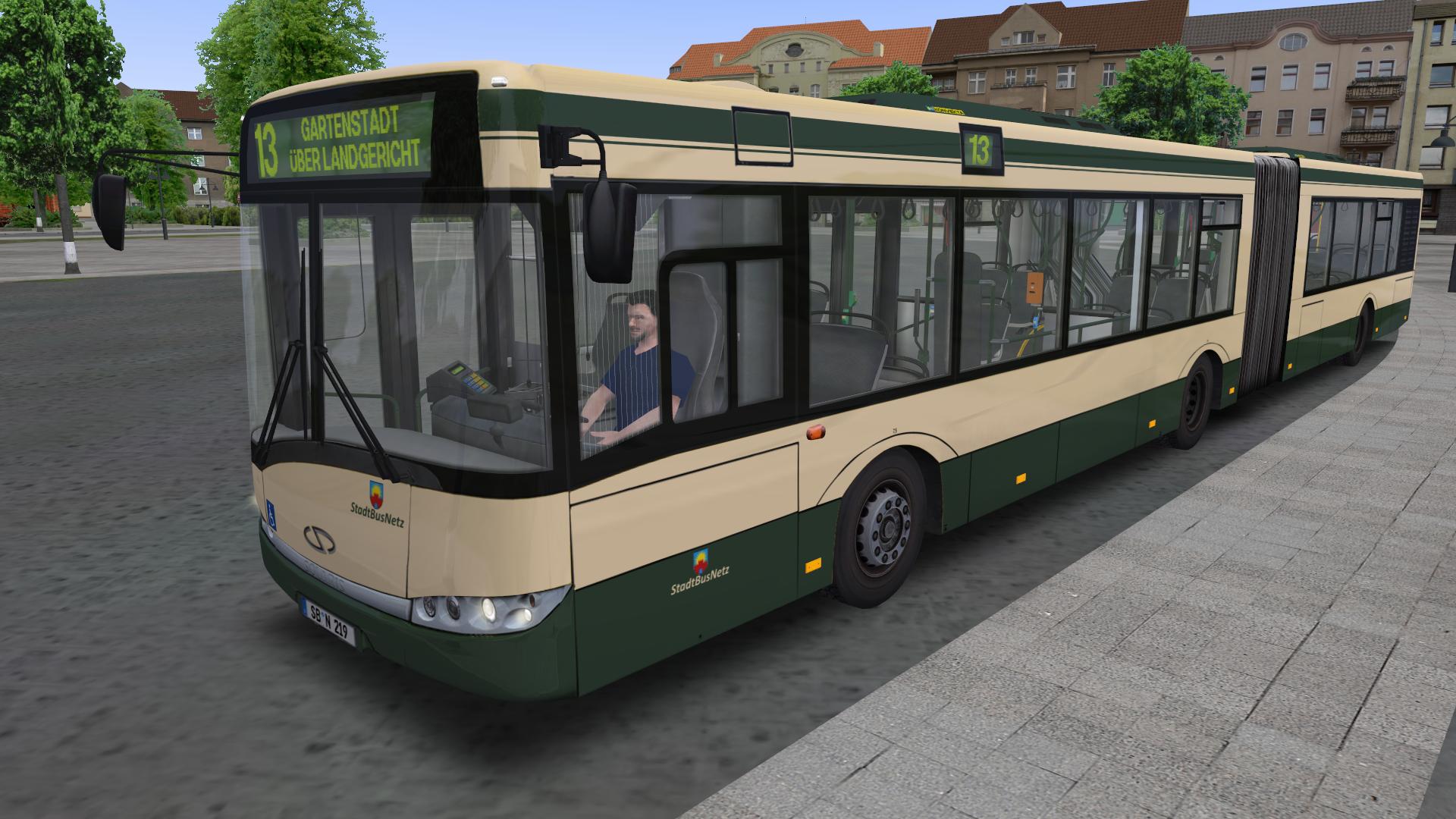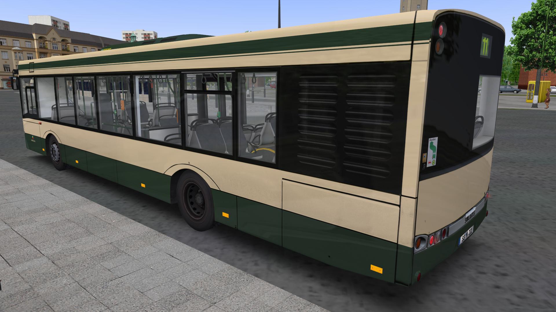 Dieses Repaint ist für den Einsatz des Solaris U12/18 in Sonnenburg gedacht. Vorläufig ist es nur ein einfaches Repaint. Es ist zunächst kein weiteres Modding vorgesehen. Zu beachten ist, daß die Repaints keine Wagennummern tragen. Empfohlen sind die Wagennummern 201 bis 205 für den SU12 und 206 bis 220 für den SU18 (damit werden die Nummernlücken, die nach Einführung der NF-Wagen entstanden sind, aufgefüllt). Kennzeichen ist natürlich klar: "SB-N", dann Leerzeile, gefolgt von den zuvor genannten Wagennummern. Damit die Kennzeichen passen, sollte in der cfg der Kennzeicheneintrag wie folgt verändert werden: