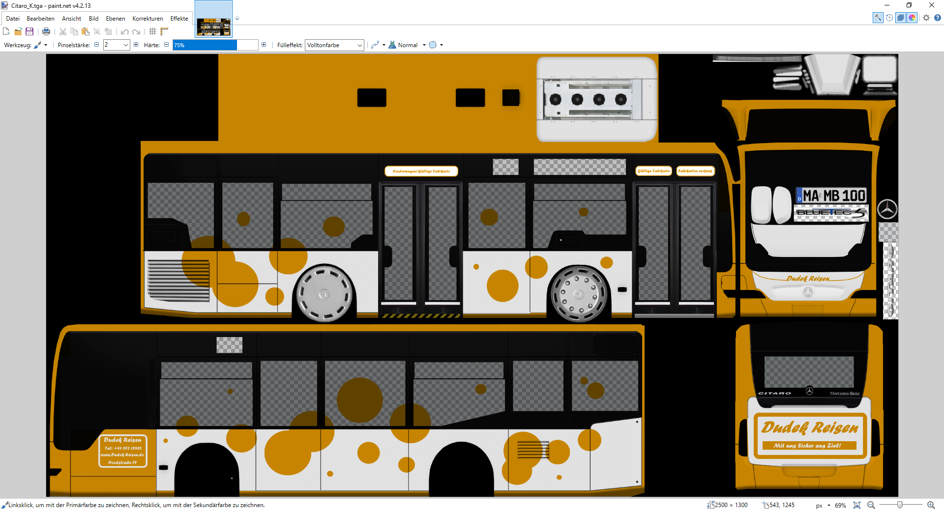 Das ist ein Repaint für den MB O530K by Helvete. Außerdem könnt ihr mir vllt repaints wünsche schicken (Ich repainte nur die Mercedes Busse die von Helvete gemacht wurden).