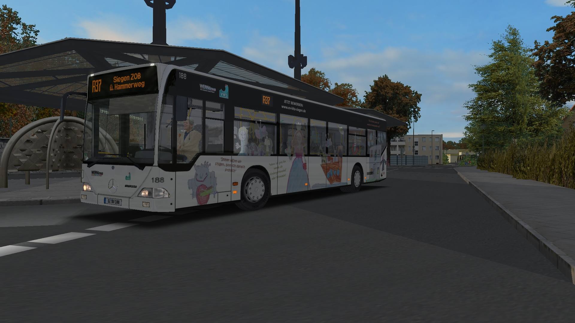 Enthalten ist das Repaint mit der aktuellen Werbung von Wagen 188 der VWS Siegen. Nachdem die Werbung für den Kreiskirchentag 2017 (das Repaint gab es von mir schon) entfernt wurde, wurde er 2018 mit Motiven der evangelischen Kita Siegen beklebt.