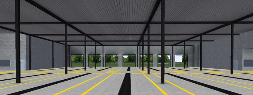 -> Das Innere des Busdepots ist nun in zwei Varianten verfügbar: Geschlossene oder offene Türen. So können die Fahrzeuge in das Gebäude einfahren.