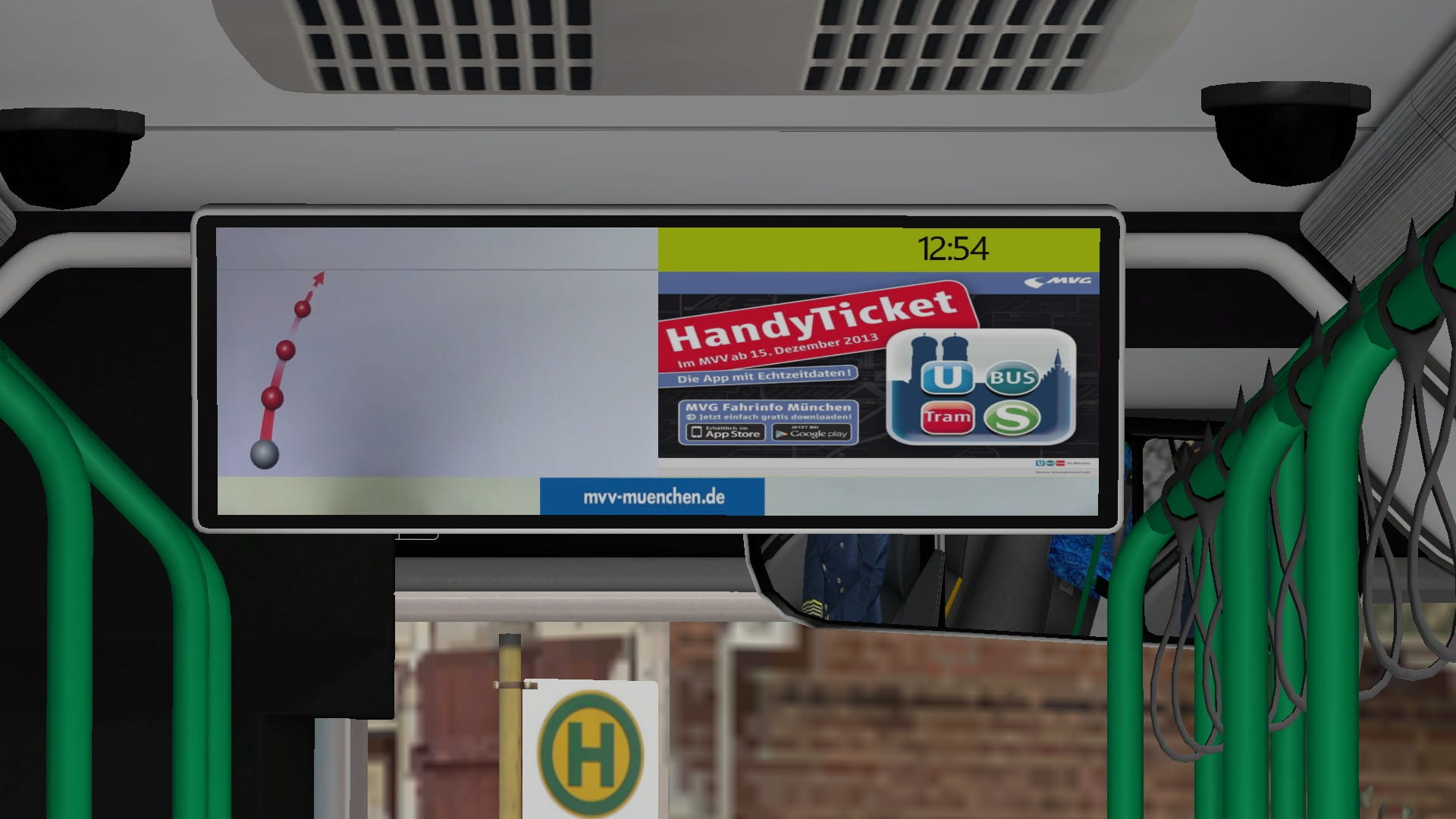 The font in the middle of the display has been changed from Bogestra to MVV and the advertising of Bogestra has been replaced by advertising of MVV, MVG and S-Bahn Munich.