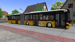 The pack contains repaints for all the sizes. This pack contains the classic PostAuto scheme for all the vehicles, which are yellow below the windows, with a red line, and with the top of the vehicle being white. This painting scheme is easily recognizable with the giant logo applied on both sides after the first axle.