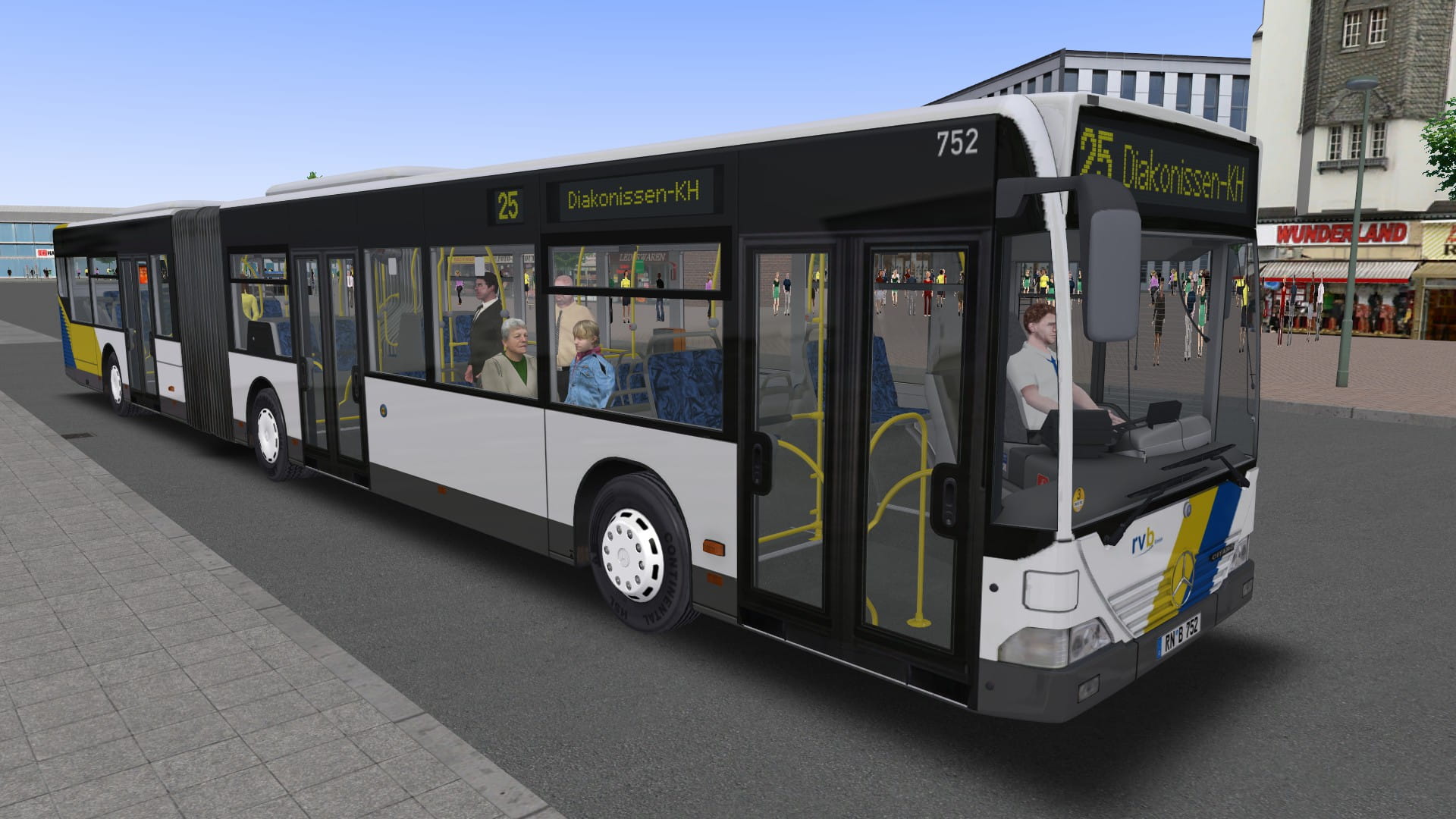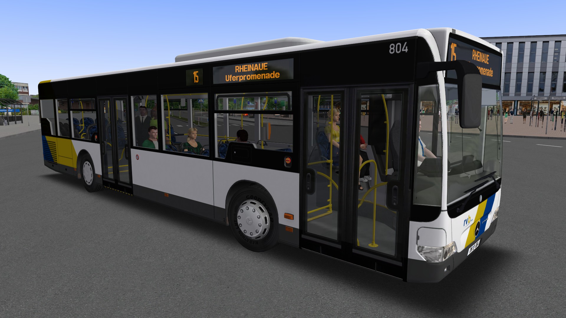 Mit diesem Erweiterungsset erhaltet Ihr Repaints und eine alternative AI-Liste für das Addon Rheinhausen von Halycon, mit denen der Fahrzeugeinsatz wesentlich bunter wird. Dank der Vorbereitung des Entwicklers sind dazu auch keine großartigen Änderungen notwendig, sondern es müssen nur die Daten dieses Erweiterungssets hinzugefügt werden, um die Map wesentlich unterhaltsamer für Euch zu gestalten und weitere moderne markentreue Gelenkbusse oder Stadt-Solobusse zum Einsatz zu bringen. Außerdem wird der Rheinhausen Überlandbus (C2Ü) mit den im Payware-Addon nicht möglichen Markenzusätzen versehen, wie Citaro-Schriftzug und Sterne.