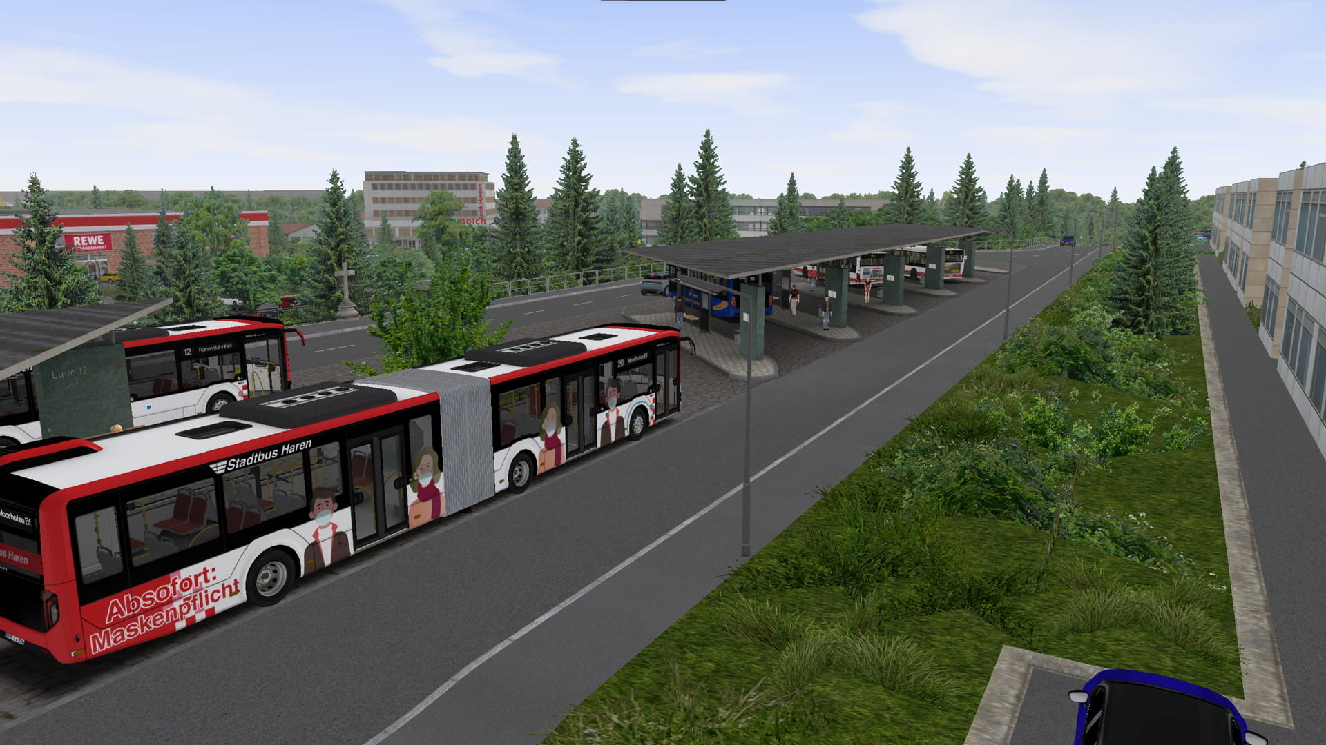 Bereits seit 1998 betreibt der Stadtbus Haren einen Großteil der Buslinien in und um Haren. Vier davon könnt ihr in dieser Umsetzung der semi-realen Stadt selbst befahren: die Linien 17, 20, 21 und N7. Jede einzelne Linie hat eine Fahrzeit von 20 - 40 Minuten, ist i.d.R. mit Kurz- und Langläufern ausgestattet und hat ihren ganz eigenen Scharm.