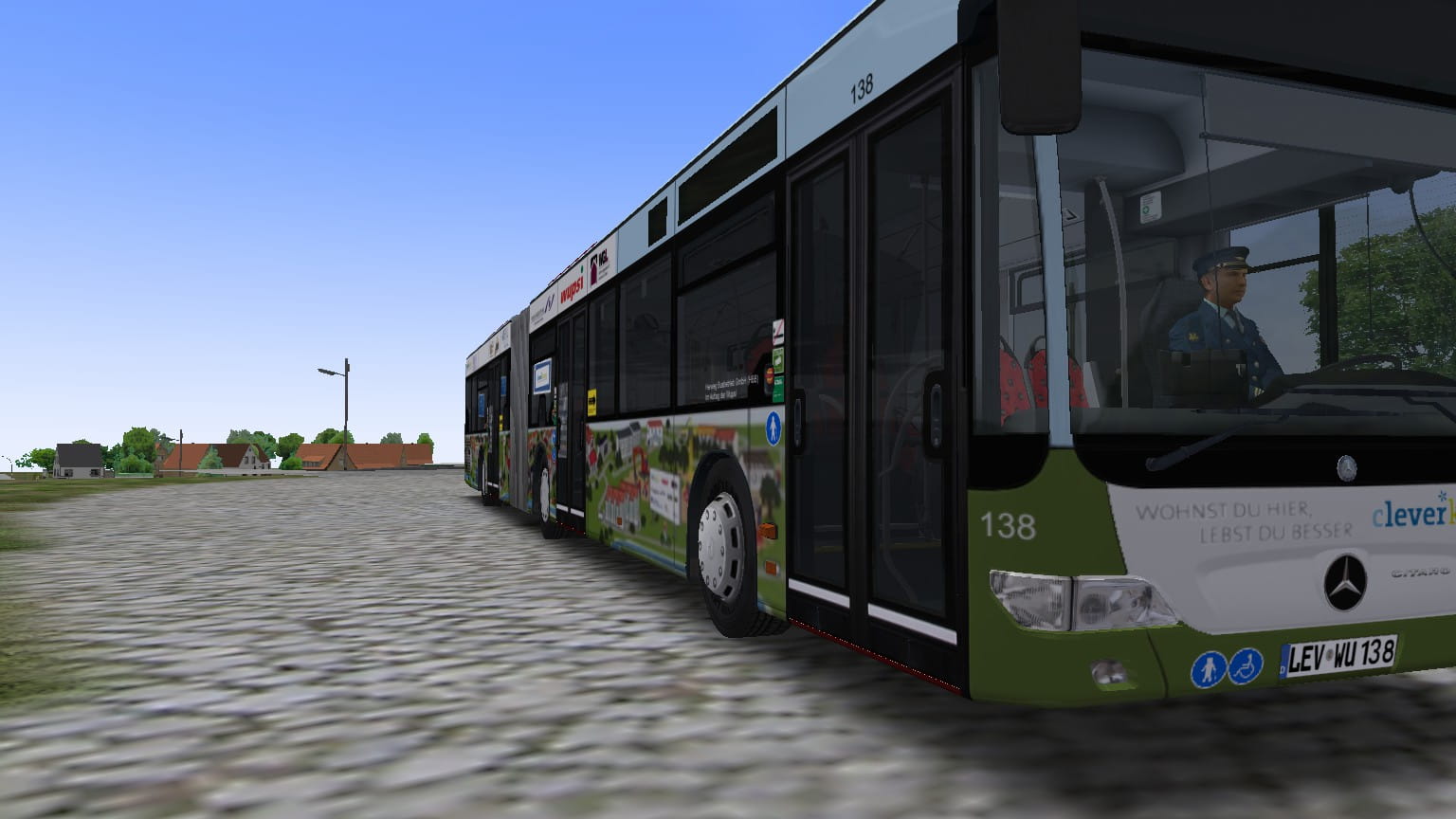 Heute gibt es mal einen Wupsi Bus mit einer Werbung die schon lange nicht mehr Fährt. Hierbei handelt es sich um den Wagen 138 der Wupsi/HBB mit der alten Cleverkusen Werbung. Auf dem Bus werden verschiedene Unternehmen und ein paar Teile von Leverkusen Fortgestellt. Da mir vorne unter der Fahrer Seite etwas fehlte und ganz hinten auf der Fahrer Seite habe ich es einfach selber weitergemalt was jetzt aber nicht perfekt aussieht aber es sieht in Ordnung aus. Der Wagen war einer der schwierigsten repaints die ich je gemacht habe ich glaube auch fast das es kein schwierigeres von der Wupsi/HBB gab oder gibt.