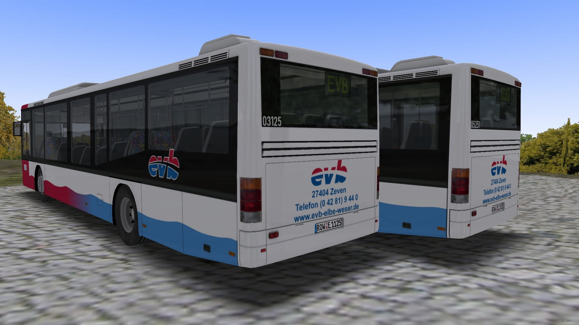 Umgesetzt wurden hier die Wagen 25 (S315 NF) und 51 (S319 NF) mit dem klassischen, alten EVB-Design und ohne Werbung, Wagen 64 (S319 NF) im modernen Design und Wagen 87 des Subunternehmers "von Ahrentschildt".