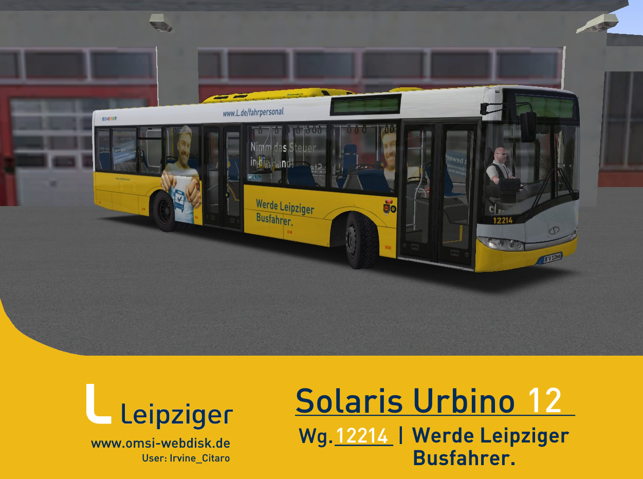 Enthalten ist die Repaint Werbung des Wagens 12214 der LVB für "Werde Leipziger Busfahrer.,, Vollwerbung wirbt. ![]()