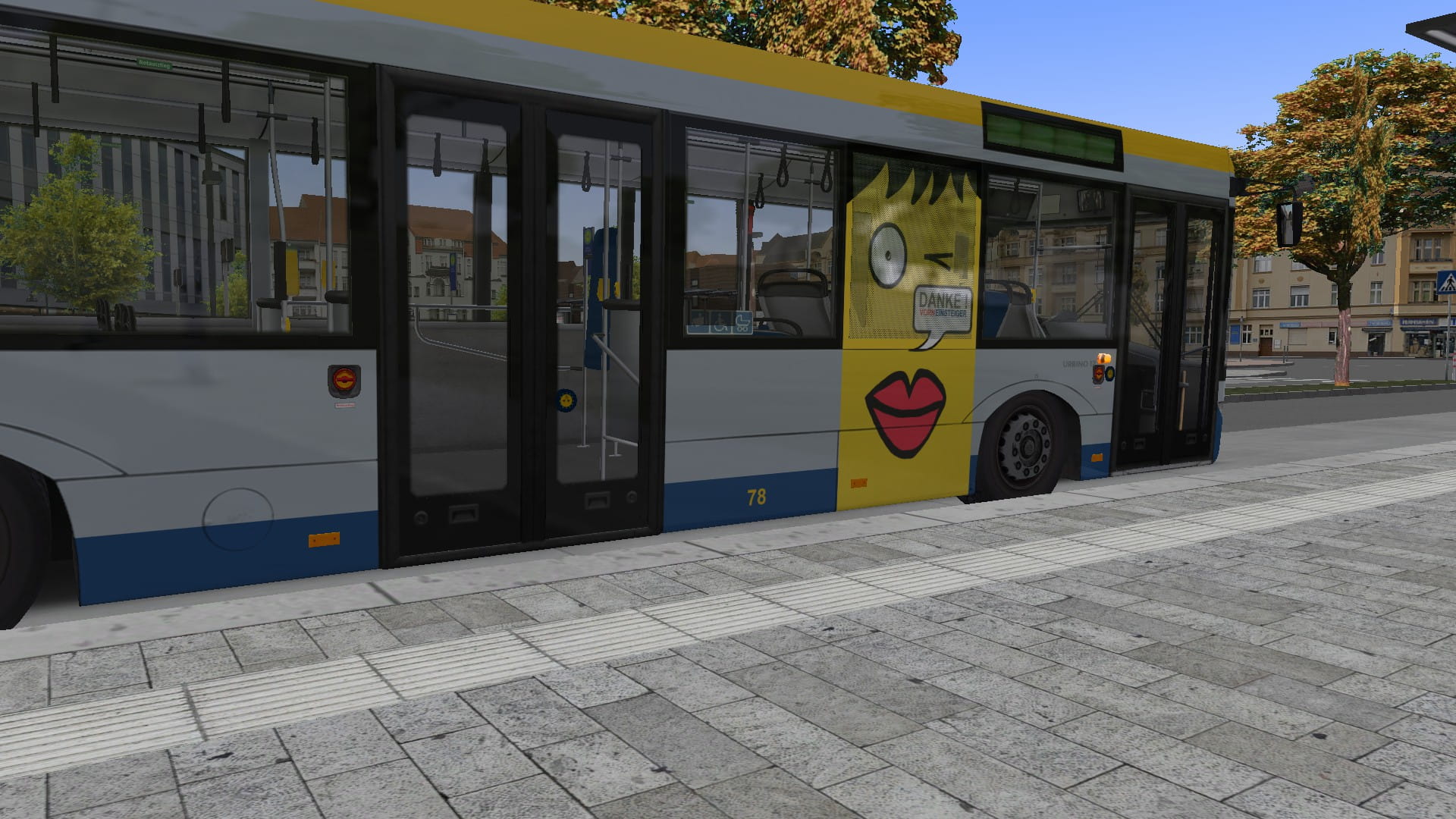 Enthalten ist die Repaint Werbung des Wagens 78 der LVB für "Vorn Einsteiger,, traffic board wirbt. ![]()