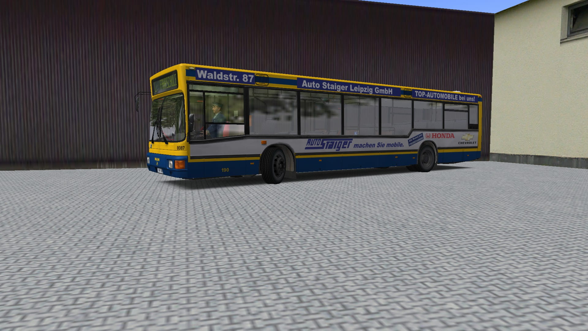 Enthalten ist die Repaint Werbung des Wagens 190 der LVB für "Auto Staiger Leipzig,, wirbt. ![]()
