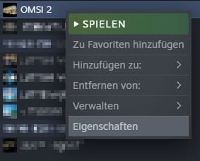 - Select the properties of OMSI 2 in Steam.